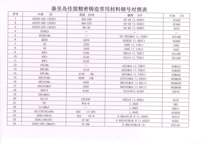 常用鋼號對照表